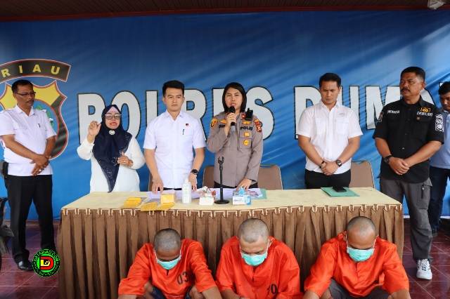 Konferensi pers dipimpin Kapolres Dumai AKBP Nurhadi Ismanto SH SIK diwakili Wakapolres Dumai Kompol Josina Lambiombir SH SIK didampingi Kasat Reskrim Polres Dumai Iptu Bayu Ramadhan Effendi STK SIK MH, Kanit Pidum Polres Dumai Ipda Hendra Hutagaol SH dan Kasubsi PIDM Si Humas Polres Dumai Iptu Zaini Waluyo.