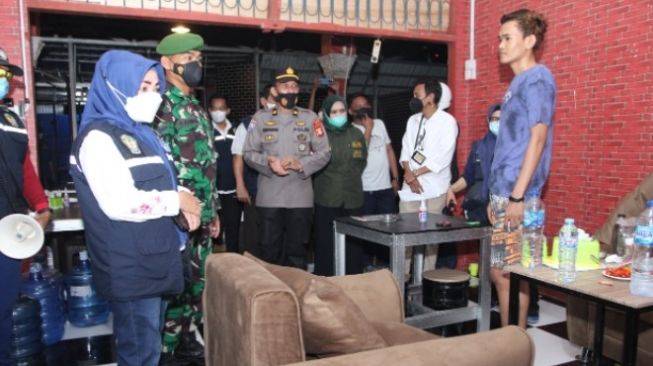 Penjabat Sekretaris Daerah Kabupaten Gowa Kamsina memimpin razia ke sejumlah tempat usaha di Kabupaten Gowa, Rabu 14 Juli 2021. (SuaraSulsel.id / Istimewa)