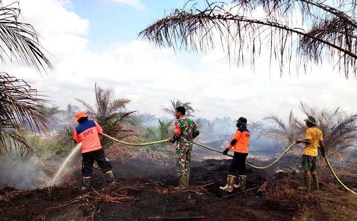 Begini Sulitnya Perjuangan Petugas Melakukan Pendinginan di Lahan Gambut yang Terbakar di Rohul