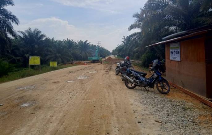 Salah satu aktifitas pengerjaan jalan penghubung Kabupaten Siak (Perawang-Maredan) dengan Kelurahan Tebing Tinggi Okura-Pekanbaru.