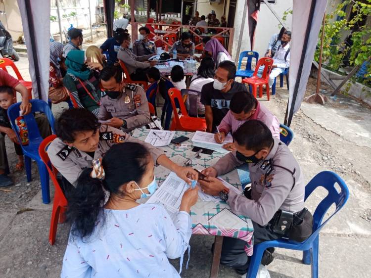 Bhabinkamtibmas Dampingi Nakes Puskesmas Tiga Kecamatan Vaksinasi Covid-19