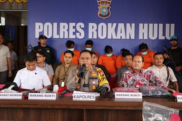 ROHUL, datariau.com - Kapolres Rohul AKBP Budi Setiyono SIK MH memimpin kegiatan Konferensi Pers pengungkapan dugaan Tindak Pidana Pencurian Dengan Pemberatan (TP Curat) Spesialis Rumah Kosong dengan 5 tersangka.
