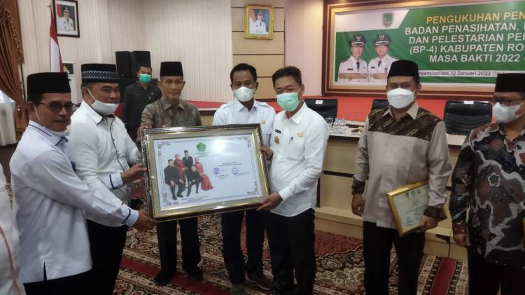 ROHIL, datariau.com - Pengurus badan Penasihatan, Pembinaan dan Pelestarian Perkawinan (BP-4) Kabupaten Rokan Hilir (Rohil) masa bakti 2022-2026 telah dikukuhkan oleh Ketua I BP-4 Provinsi Riau Drs H Muhammad Azis, Rabu (12/1/2022).