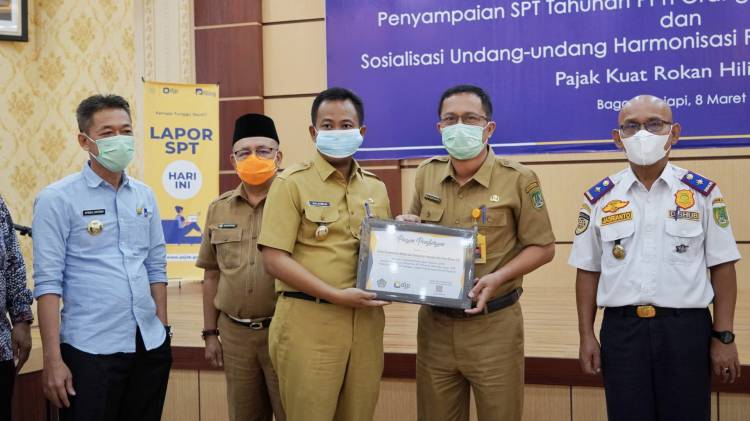 Turut hadir dalam acara itu, Wakil Bupati H Sulaiman, Kepala Kantor Pelayanan Pajak Pratama (KPP) Dumai, Kakanwil DJP Riau, KP2KP Bagansiapiapi, Forkompinda serta kepala organisasi perangkat daerah (OPD) dilingkungan Pemkab Rohil.