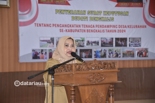 Pada kesempatan itu Bupati Bengkalis Kasmarni mengucapkan selamat dan taniah kepada 341 tenaga pendamping desa/kelurahan se-Kabupaten Bengkalis, baik pendamping ekonomi maupun pendamping pembangunan.