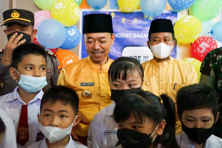 "Hari ini kita melaksanakan vaksinasi kepada anak usia 6-11 tahun di sekolah Methodist. Pagi hari ini sebanyak 200 lebih anak yang akan di vaksin," kata Bupati.