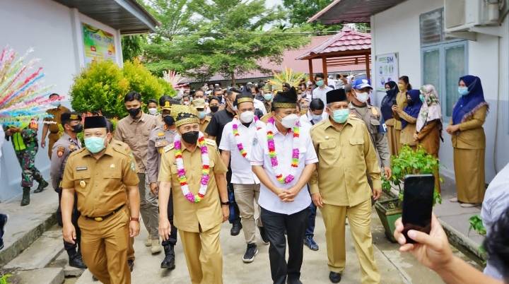 Gubernur Riau, Bupati Siak dan Wakil Bupati Siak saat mendampingi Wamendes PDTT tinjau pelaksanaan vaksin di SMAN I Tualang dan SMAN 2 Tualang.