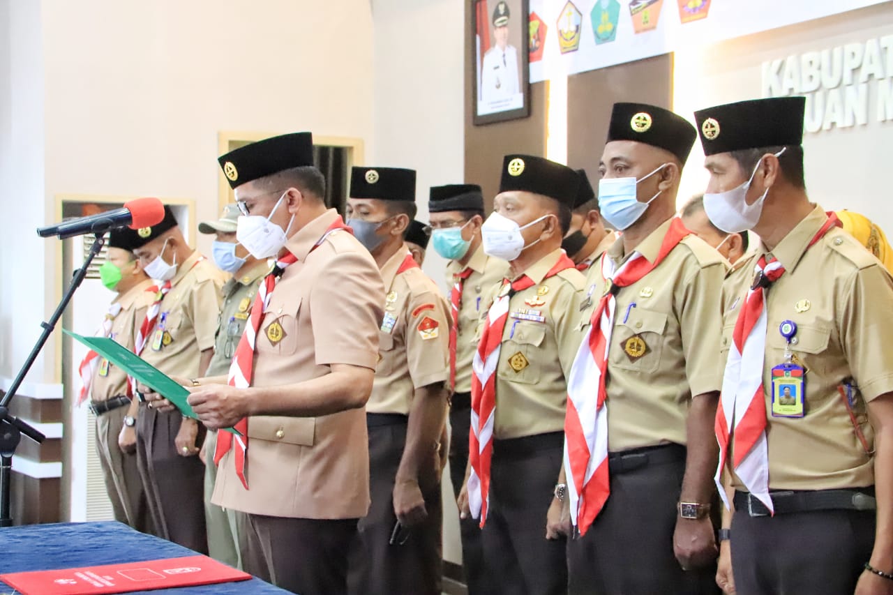 KEPULAUAN MERANTI, datariau.com - Bupati Meranti H Muhammad Adil bersama Wakil Bupati ikuti acara Pelantikan dan Pengukuhan Majelis Pembimbing, Kwartir Cabang Gerakan Pramuka Kabupaten Kepulauan Meranti masa Bhakti 2020-2025 di Gedung Aula Hijau Kantor Bupati, Selasa (12/07/2021).