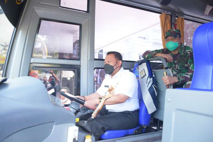 Bupati Kampar Luncurkan Bus Pelayanan Vaksin Untuk Keliling Desa
