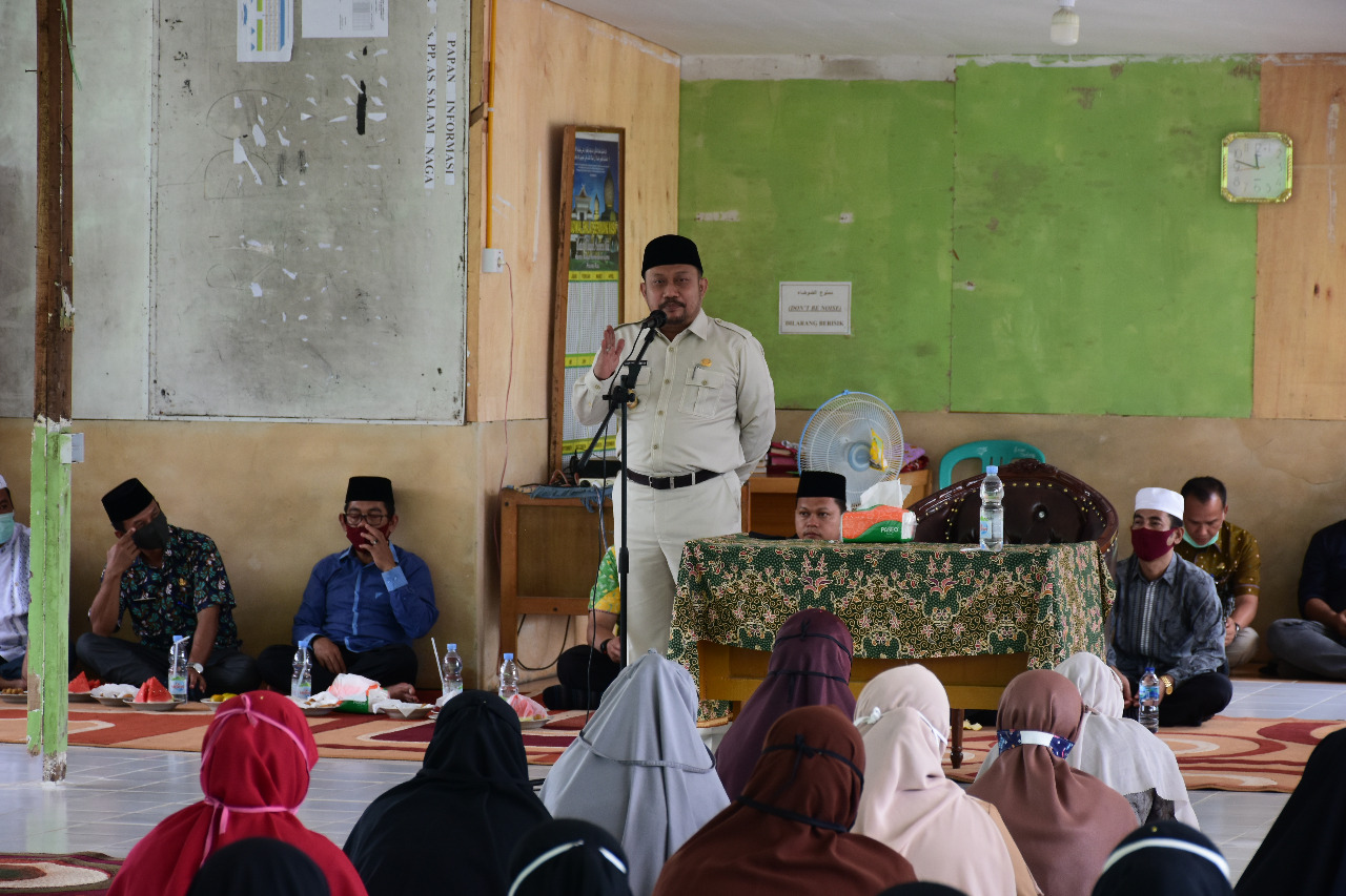 Sebelum memberikan arahan Bupati Kampar Catur Sugeng yang didampingi Lita Waryani menyerahkan bantuan Rp50 Juta dengan berbentuk barang bangunan, yang langsung diterima oleh pengurus Pompes DR Amin MPd di hadapan para santri dan majelis Guru Pondok Pesantren As Salam.