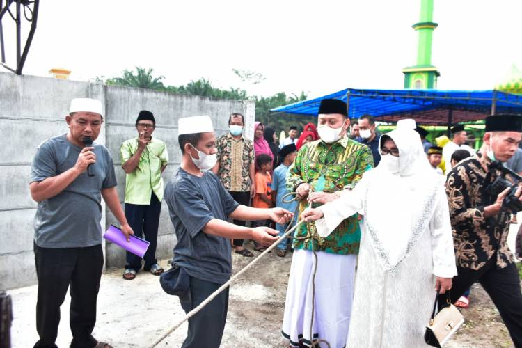 Bupati Kampar Serahkan Sapi Kurban di Masjid Baiturrahman Tapung, Ketua PKK di Baiturrahman Bangkinang
