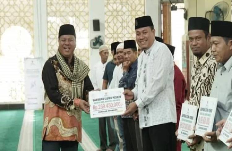 Bupati Kuansing dan Baznas Serahkan Bantuan Untuk Pelajar dan Jompo Kurang Mampu di Masjid Agung Ar-Raudhah