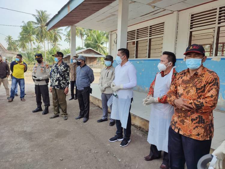 KEPULAUAN MERANTI, datariau.com - Bupati Meranti H Muhammad Adil SH Kunjungi dua Desa yang di Lockdown saat ini Desa Teluk Buntal dan Desa Tanjung Gadai Kecamatan Tebingtinggi Timur yang hari ini mengalami kenaikan kasus Covid-19 serta memberikan bantuan Sembako pada Pasien, Kamis (29/07/2021).