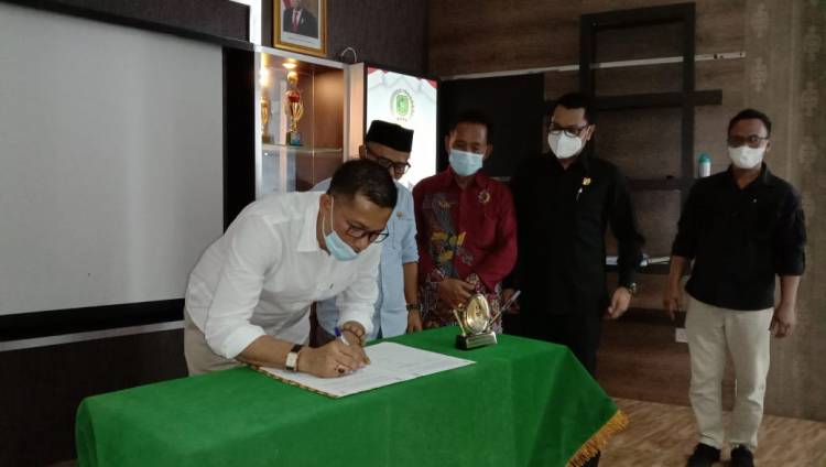 Bupati Meranti Ikuti Acara Penandatangan MoU Rancagan Awal RPJMD di Gedung DPRD