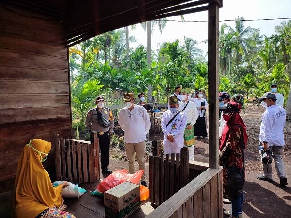 Bupati Meranti Salurkan Bantuan Untuk Warga Desa Topang Terpapar Covid-19