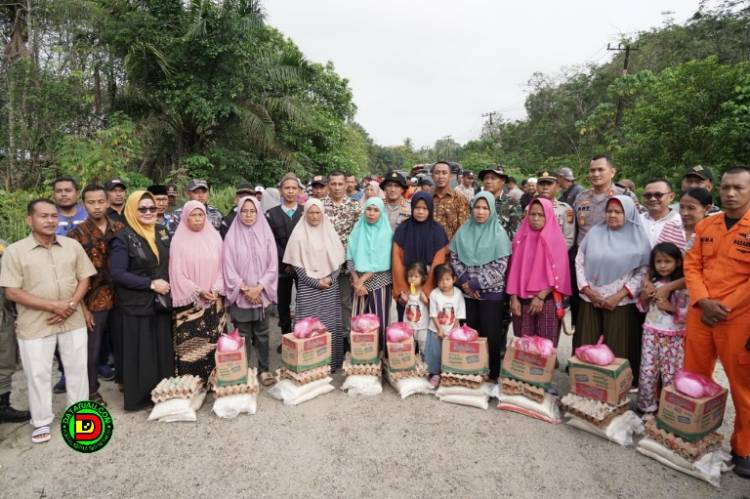 Bupati Meranti Serahkan Bantuan Sembako Untuk Korban Banjir di Desa Kundur