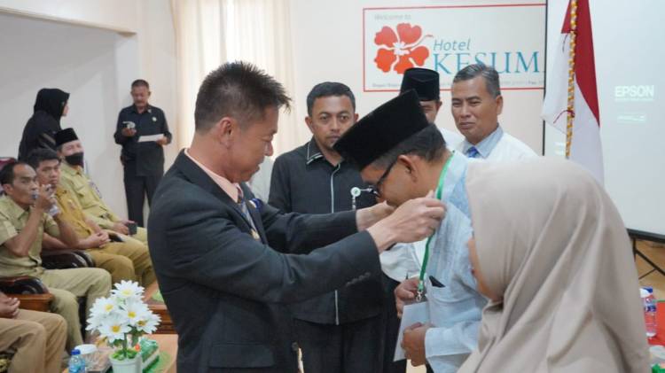 Pembukaan pelatihan Dewan Hakim ditandai dengan penyematan tanda peserta kepada perwakilan oleh Bupati Rohil Afrizal Sintong.