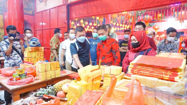 Bupati Rohil Kunjungi Warga Tionghoa yang Sembahyang Ritual Bakar Tongkang