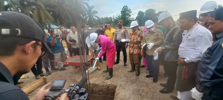 ROHIL, datariau.com - Bupati Rokan Hilir (Rohil) Afrizal Sintong secara langsung melakukan peletakan batu pertama pembangunan Tower dan bangunan LPP TVRI di LenggadaiHilir, Kecamatan Rimba Melintang, Jumat (10/6/2022).