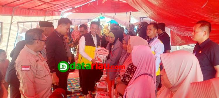 Bupati Rohil Serah Bantuan Sembako Korban Banjir di Ujung Tanjung