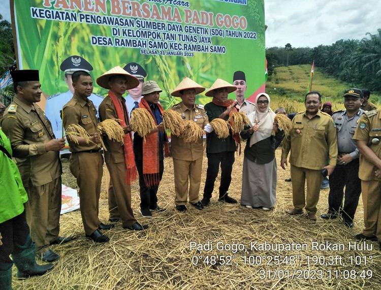 Bupati Rohul dan Kepala BSIP Riau Panen Bersama Penangkaran Padi Gogo