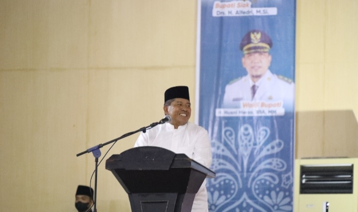 Dalam sambutannya, Bupati Siak Alfedri mengucapkan selamat dan tahniah atas pelantikan Pengurus Cabang Nahdlatul Ulama (PCNU) Kabupaten Siak masa khidmad 2022-2027.