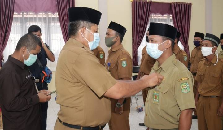 Sebelumnya, Bupati Siak Drs H Alfedri MSi melakukan penandatangan berita acara pengukuhan serta pemasangan tanda pengenal secara simbolis kepada perwakilan Kepala Dusun.(Eman)