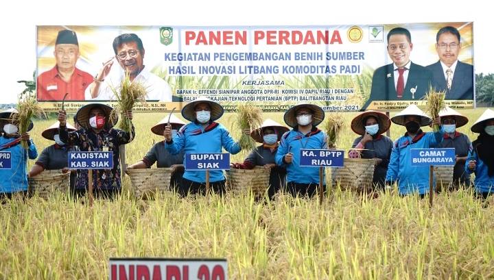 Giat ini merupakan pengembangan benih sumber hasil inovasi litbang komoditas padi kerjasama anggota DPR RI Komisi-IV Dapil Riau, Kementrian Pertanian, Balai Pengkajian Teknologi Pertanian (BPTP) Balitbang Riau dengan kelompok Tani Mekar Jaya, Kampung Jaya Pura Kecamatan Bungaraya, Kabupaten Siak.