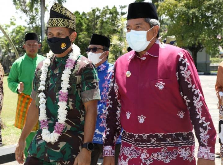 SIAK, datariau.com - Bupati Siak Drs H Alfedri MSi bersama Sekretaris Daerah Kabupaten Siak Arfan Usman, menyambut secara langsung kehadiran Brigjen TNI M Syech Ismed SE MHan, beserta istri Ny Fitri Rubianti, yang merupakan mantan Komandan Korem (Danrem) 031/Wira Bima.