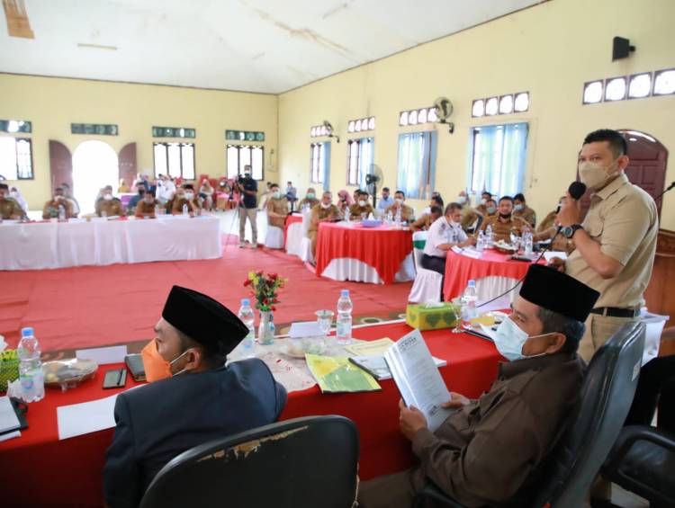 Bupati Siak Drs H Alfedri MSi dan Camat Minas Hendra Nugraha pada Musrenbang Kecamatan Minas.