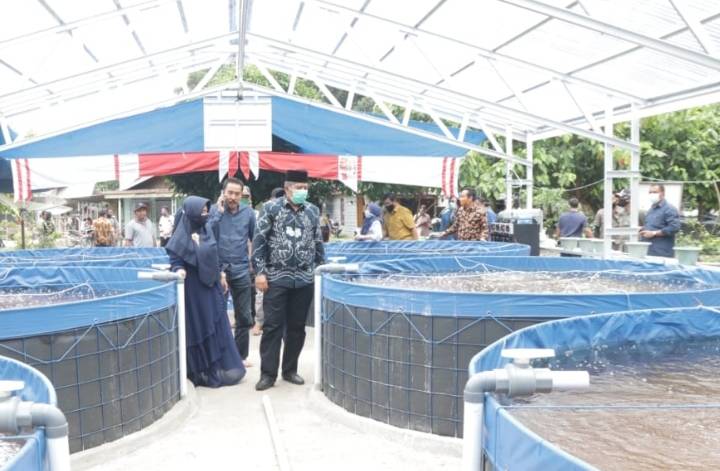 Bupati Siak Tinjau Kolam Bioflok di Kampung Libo Jaya Bantuan Kementrian Kelautan dan Perikanan