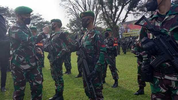 Komandan Resor Militer 061/Suryakencana Brigjen Achmad Fauzi melepas pasukan Yonif 315/Garuda dalam operasi Pamrahwan Papua, Minggu, 23 Mei 2021.