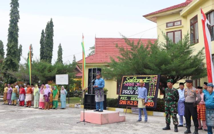 "Hari jadi yang ke-67 Provinsi Riau adalah hari jadi yang sudah cukup matang terutama di Provinsi kita Riau dan begitu juga dengan kita di SMAN 2 Bangko Pusako ini," ungkap Hj Rosita Suhud.