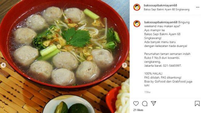 Bakso Sapi Bakmi Ayam 68, kuliner Singkawang. (Instagram)