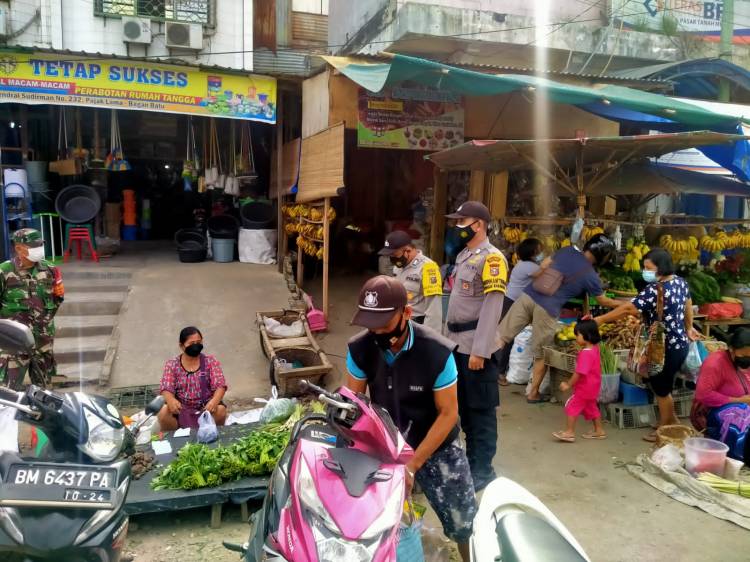 Cegah Covid-19, Polsek Bagan Sinembah Sosialisasi Prokes di Pajak Lama