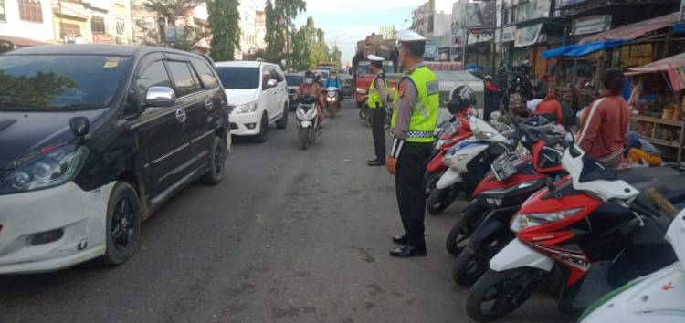 Cegah Laka Lantas, Polsek Bagan Sinembah Tertib Parkir di Pajak Lama Baganbatu