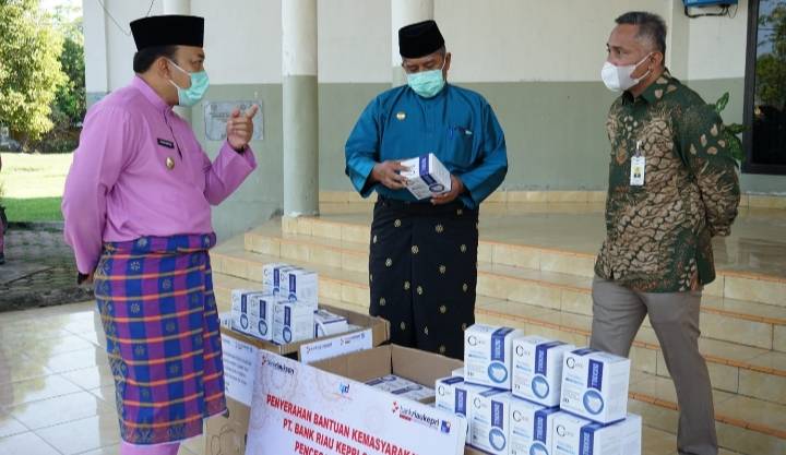 SIAK, datariau.com - Bank Riau Kepri Cabang Siak menyalurkan bantuan berupa masker kepada Pemkab Siak bentuk upaya dan antisipasi mencegah penyebaran covid-19 di wilayah Kabupaten Siak saat ini.