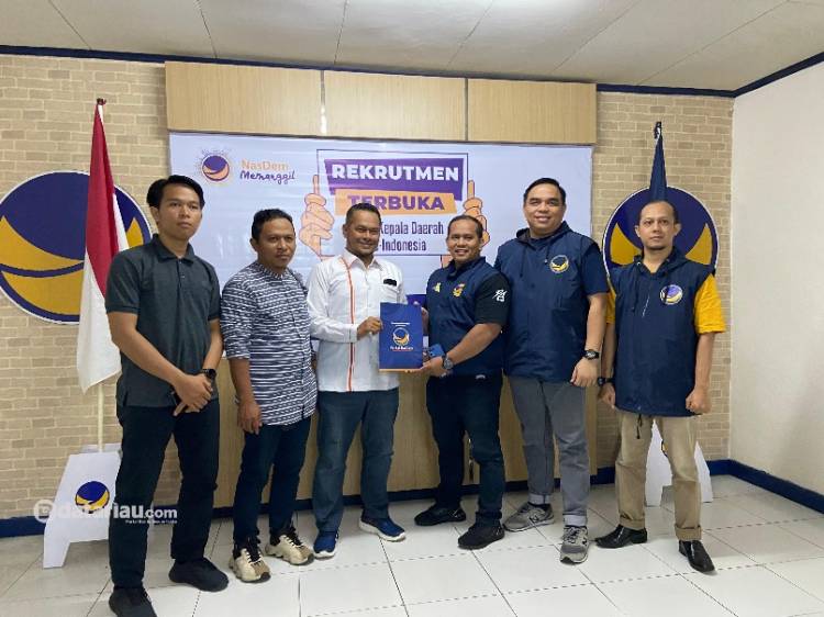 Hamdani mewakili Dr Muhammad Ikhsan MSc mengambil formulir pendaftaran Bacalon Walikota Pekanbaru ke DPW Partai NasDem Provinsi Riau, Sabtu (4/5/2024) siang.