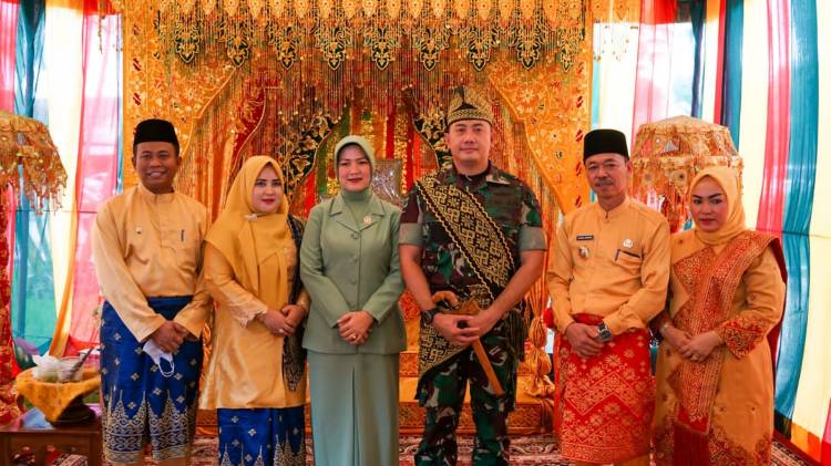 Selasa (25/1/2022) Dandim Erfani beserta istri disambut secara adat oleh Bupati Rohil Afrizal Sintong dan istri Sanimar Afrizal di halaman mess Pemda Rohil.