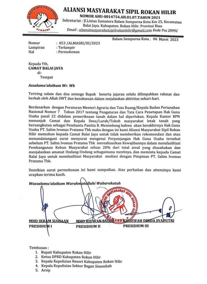 Tag:Aliansi Masyarakat Sipil Rokan Hilir ALMASRIAlmasriBalai jayaCamat balai jayaHGUPT Salim Ivomas Pratama TbkPlasma