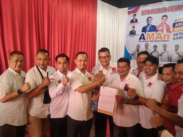 Bakal Calon Walikota Pekanbaru Agung Nugroho menyampaikan rasa terimakasih atas dukungan yang diberikan Projo. Dukungan ini semakin memperkuat posisi pasangan AMAn dalam memenangkan Pilwako Pekanbaru 2024.