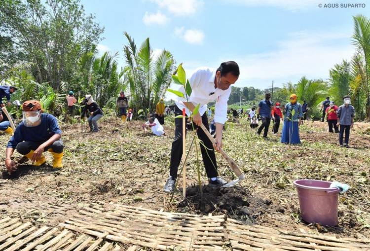 Momen Presiden Jokowi saat melakukan penanaman Mangrove pada kunjungan kerja di Kabupaten Cilacap, Jawa Tengah.