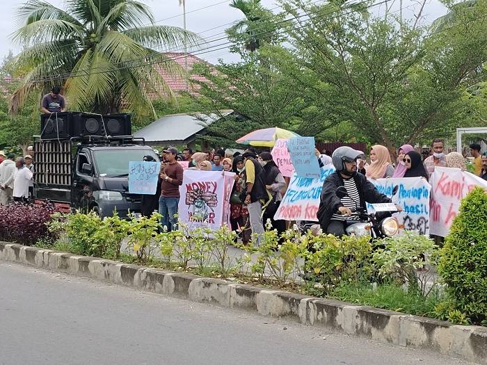 Suasaa aksi demo Alliansi Masyarakat Langsa, Kamis (5/11/2024).