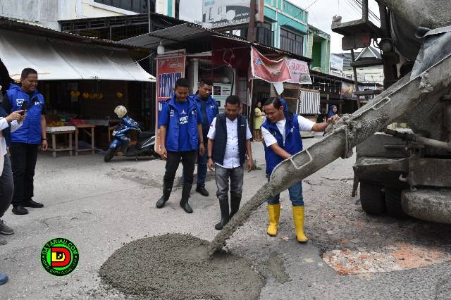"Acara gotong royong pengurus dan kader Demokrat Pekanbaru dalam mengatasi permasalahan jalan berlobang yang semakin banyak di Pekanbaru," kata Ketua DPC Partai Demokrat Kota Pekanbaru, Tengku Azwendi Fajri SE, usai kegiatan goro.