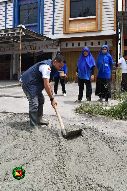 PEKANBARU, datariau.com - Pengurus dan kader DPC Partai Demokrat Kota Pekanbaru melakukan gotong royong menimbun jalan berlubang di Kota Pekanbaru. Untuk langkah awal, kegiatan dilaksanakan di Jalan Taman Karya Kecamatan Tuah Madani, Ahad (29/1/2023).