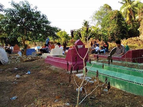 Suasana ziarah kubur dalam momen tradisi hari raya enam di Desa Salo Timur.