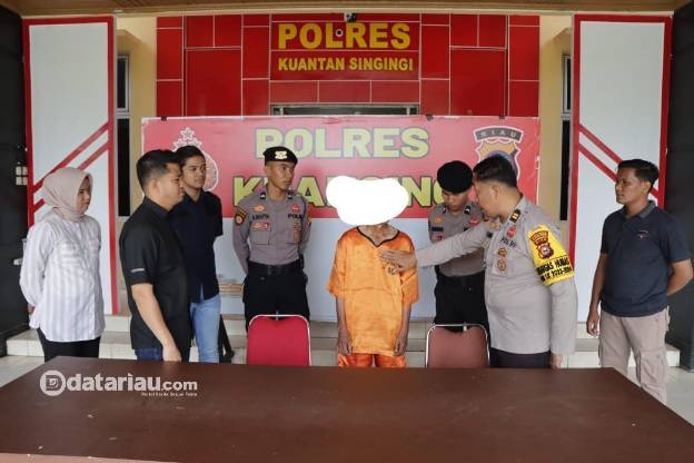 Kakek terduga pelaku pencabulan anak dibawah umur saat diamankan Polres Kuansing.