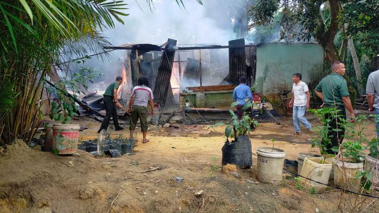 BAGANBATU, datariau.com - Rumah dan sekaligus dijadikan Bengkel Las di wilayah Pirdam Jalur II ujung, RT02 RW02 Dusun Manunggal Jaya, Kepenghuluan Bagan Manunggal, Kecamatan Bagan Sinembah, Rohil ludes terbakar. Diduga, kebakaran akibat korsleting listrik.