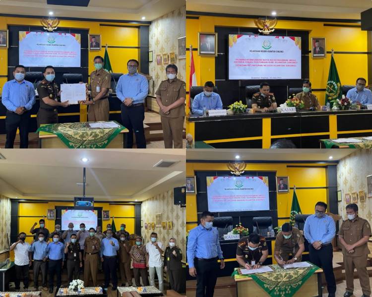 Penandatanganan Nota Kesepahaman antara Kejari Kuansing dan Dinas Pertanian Kuansing di laksanakan di Aula Kantor Kejari Kuansing, Senin (21/06/2021).