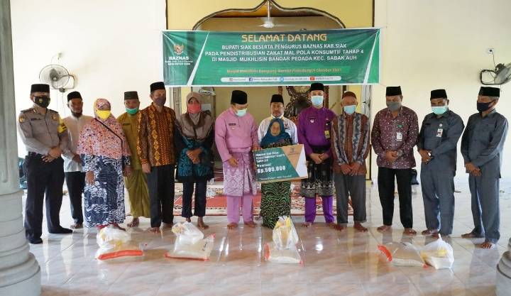 Wakil Bupati Siak H Husni Merza BBA MM saat menyalurkan zakat pola komsuntif.